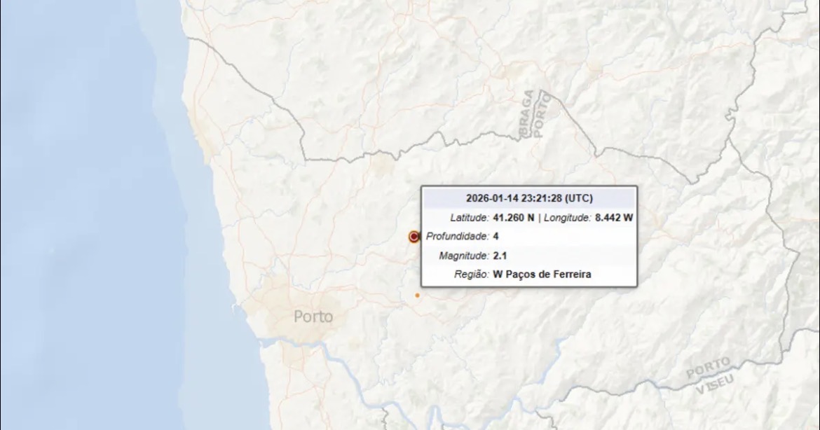 Um sismo foi registado na noite de quarta-feira, pelas 23h20, com epicentro localizado a cerca de seis quilómetros a oeste de Paços de Ferreira, segundo informações do Instituto Português do Mar e da Atmosfera (IPMA).